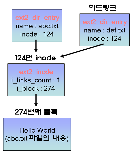 파일을 삭제 할 때에는 이 i_links_count 값이 0이 아니면 삭제되지 않습니다. 하드링크를 모두 지워야 파일이 삭제 됩니다.