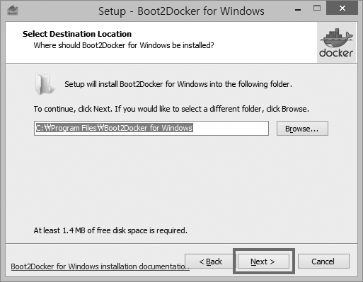 Boot2Docker 설치 위치 설정입니다. 기본 위치에 설치합니다.