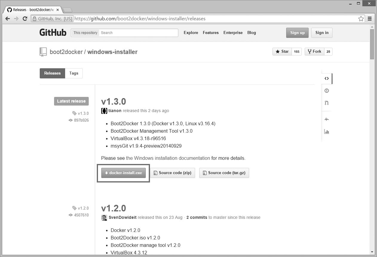 그림 2-8 GitHub에서 docker-install.exe 파일 다운로드