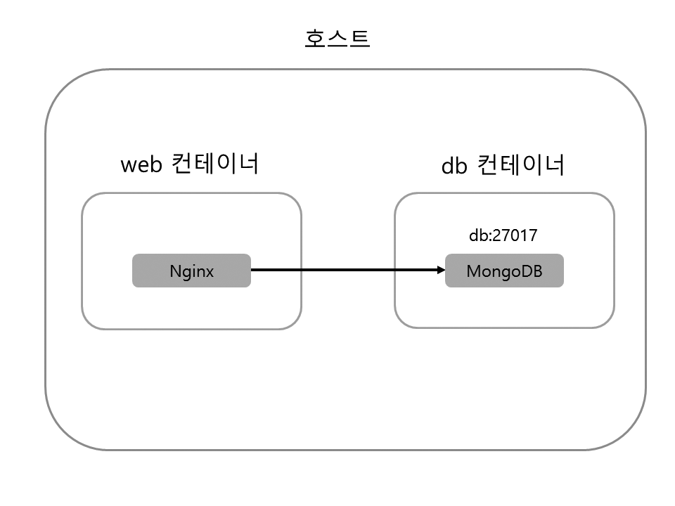 이제 web 컨테이너 안에서 db:27017 주소로 db 컨테이너의 MongoDB에 접속할 수 있습니다.