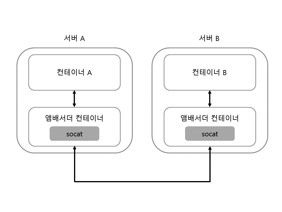 앞에서 설명한 --link 옵션은 같은 서버의 컨테이너끼리 연결하는 옵션입니다. 이번에는 앰배서더 컨테이너(Ambassador Container)라는 것을 이용하여 다른 서버에 있는 컨테이너에 연결해보겠습니다.