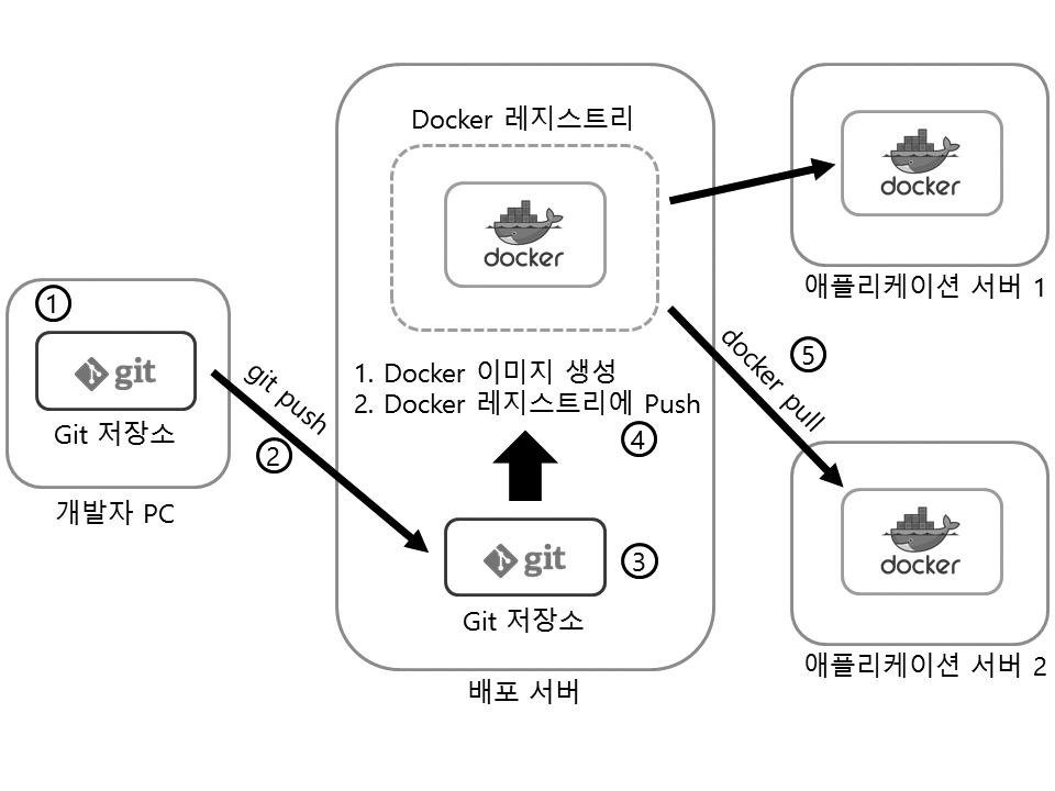 git push명령이 발생하면 git hook을 실행시킨다. - git hook에서 Docker 이미지를 생성한 뒤 Docker 레지스트리에 올린다.