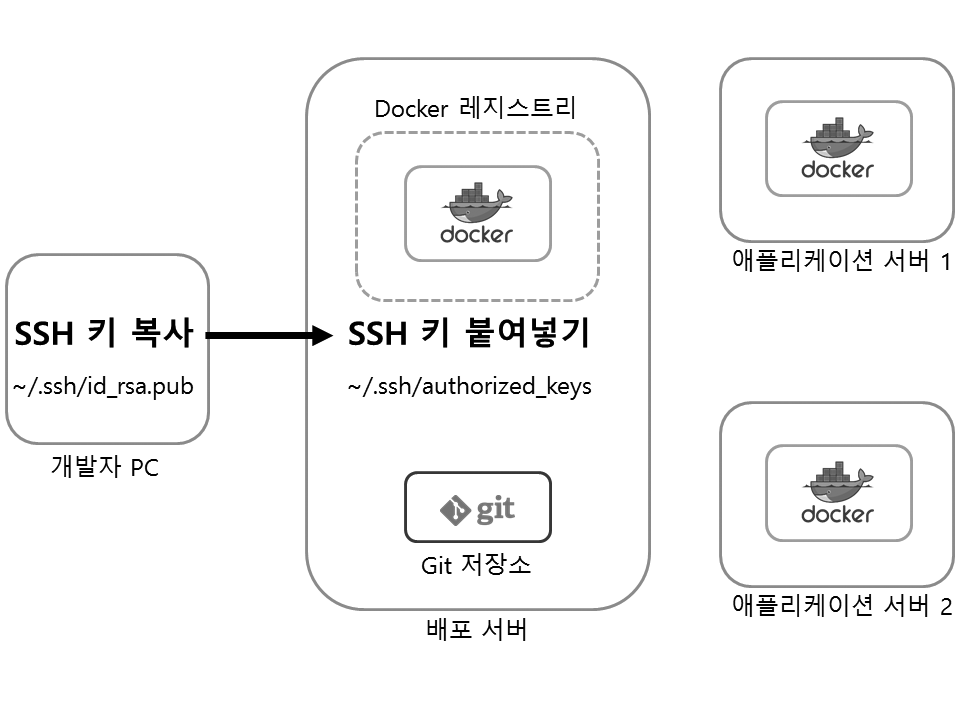 개발자 PC에서 비밀번호 없이 배포 서버에 접속할 수 있도록 앞에서 생성한 SSH 키를 설정합니다.