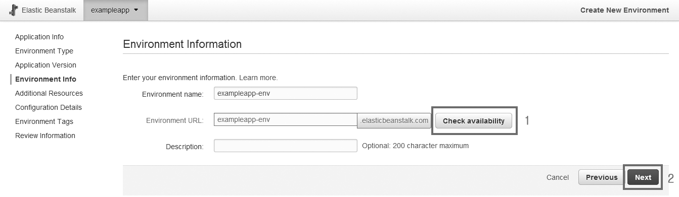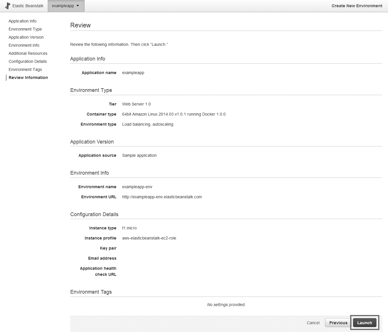- Launch a new environment running this application: 애플리케이션이 실행될 환경을 생성하는 옵션입니다. 애플리케이션은 환경이 없으면 실행할 수 없으니 나중에라도 생성해야 합니다. 이미 생성된 환경을 사용할 수도 있습니다.