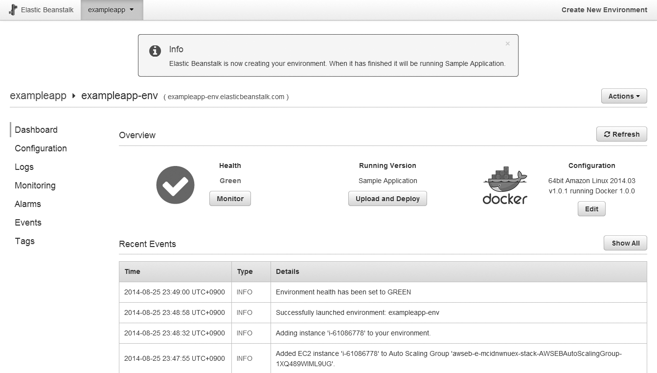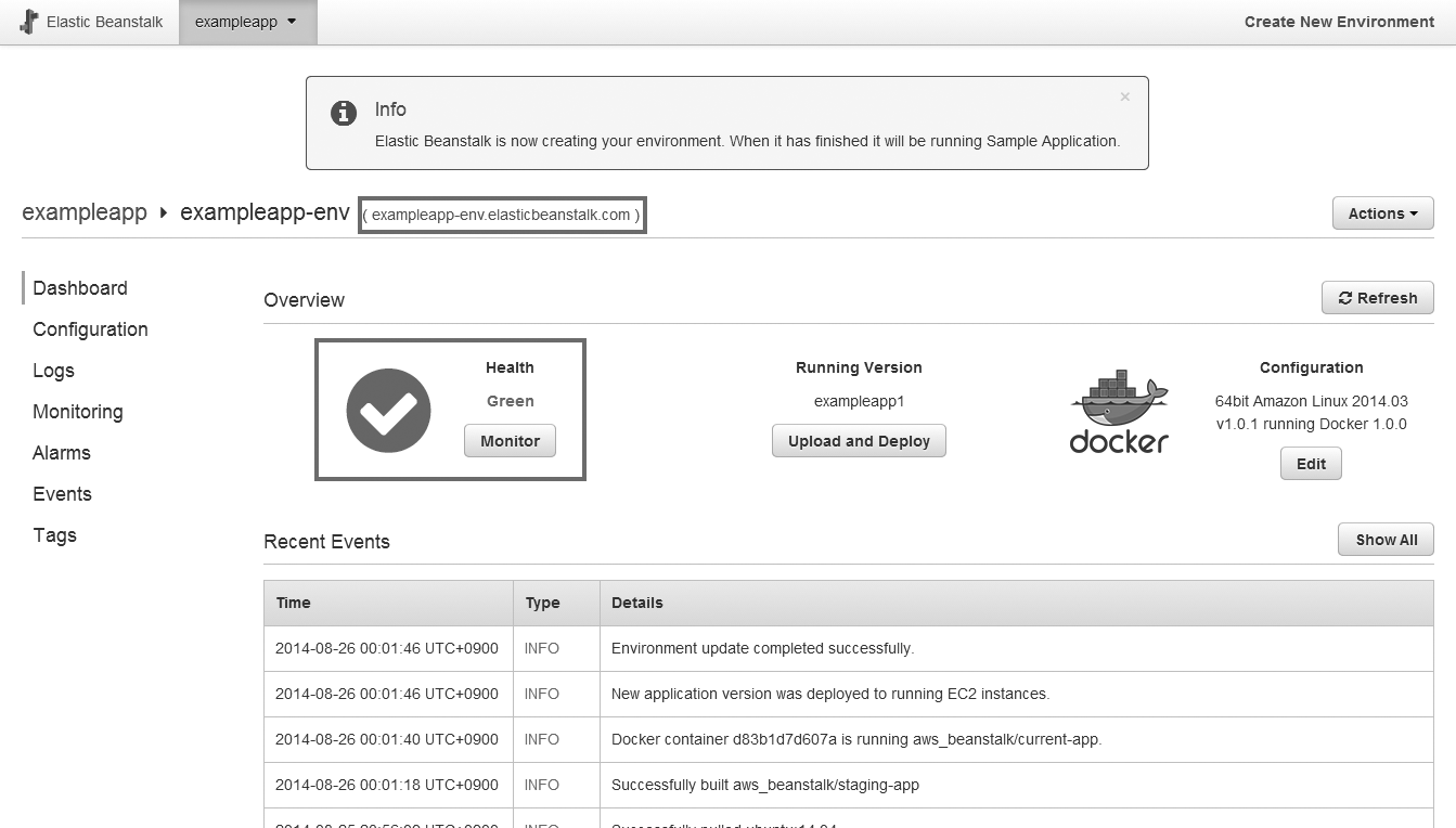 그림 10-11 Elastic Beanstalk Docker 애플리케이션 생성 완료