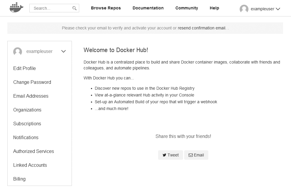 Docker Hub를 사용하려면 먼저 가입을 해야 합니다. 웹 브라우저를 실행하고 https://hub.docker.com에 접속합니다.