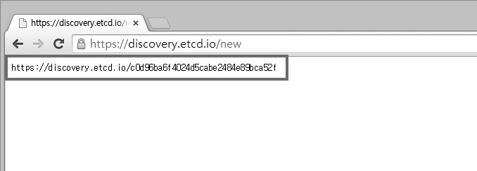 이제 클러스터 상태를 저장하기 위해 etcd discovery URL을 할당받아야 합니다. 터미널에서 다음 명령을 실행하거나 웹 브라우저에서 https://discovery.etcd.io/new에 접속합니다.