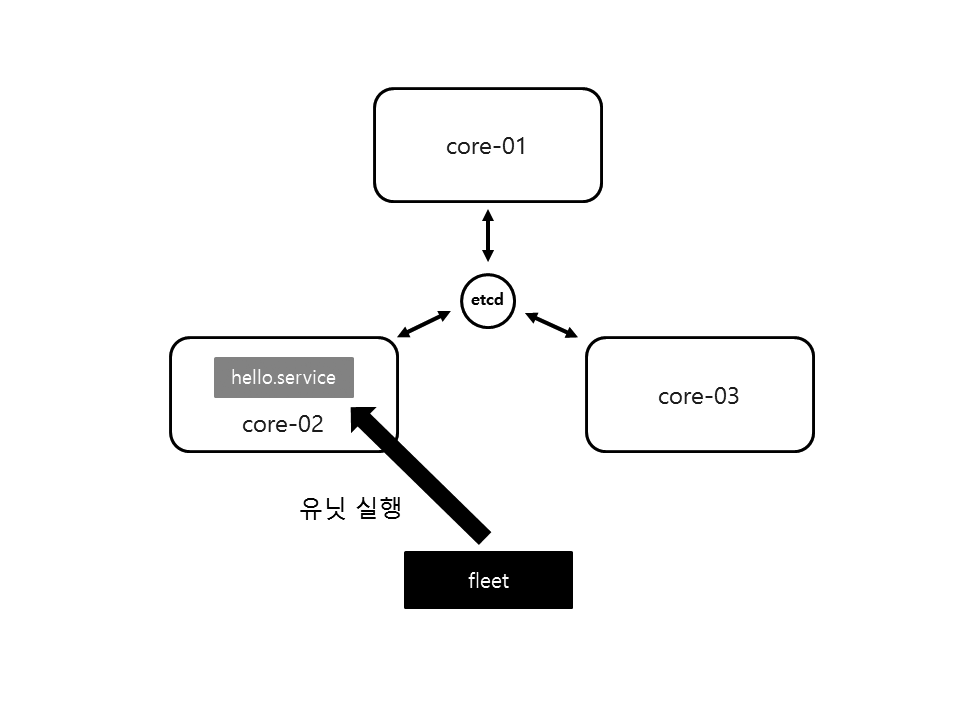 fleetctl start 명령으로 유닛을 실행하면 hello.service 파일의 내용이 클러스터의 모든 노드에 공유됩니다.