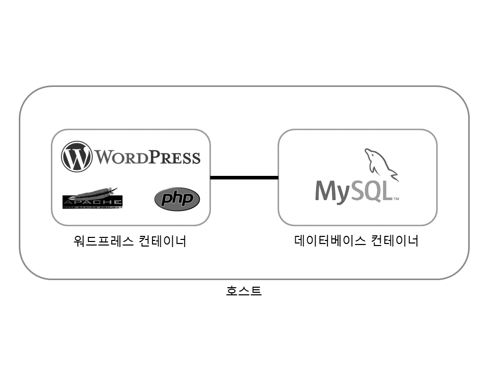 - 워드프레스 이미지: 웹 서버로 사용할 Apache를 설치합니다. 그리고 워드프레스가 PHP로 작성되어 있으므로 PHP도 설치합니다.