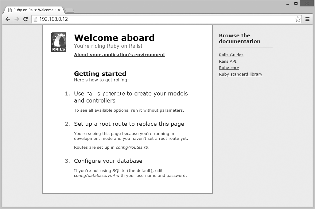 그림 17-2 웹 브라우저에서 Rails 컨테이너에 접속