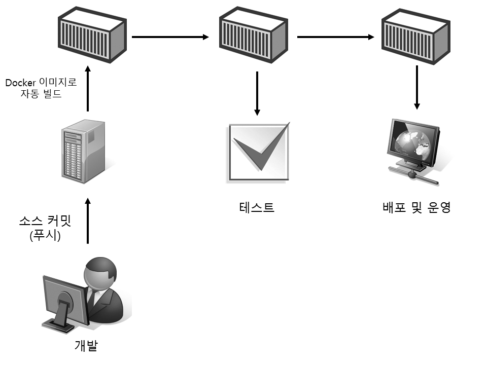 - 개발자가 소스 서버/빌드 서버에 소스를 올리면 Docker 이미지를 자동으로 빌드합니다.