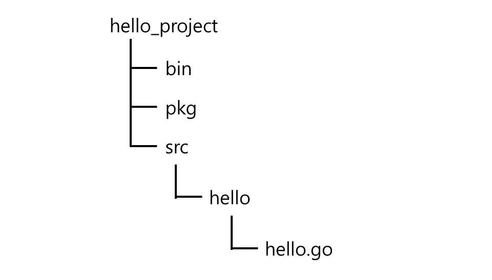 다음과 같이 hello_project 디렉터리를 예로 들면 hello_project 아래에 bin, pkg, src 디렉터리가 들어있습니다.
