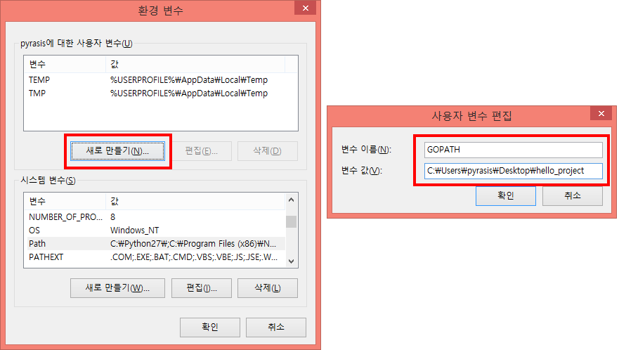 그림 3-2 Windows 환경 변수에 GOPATH 추가