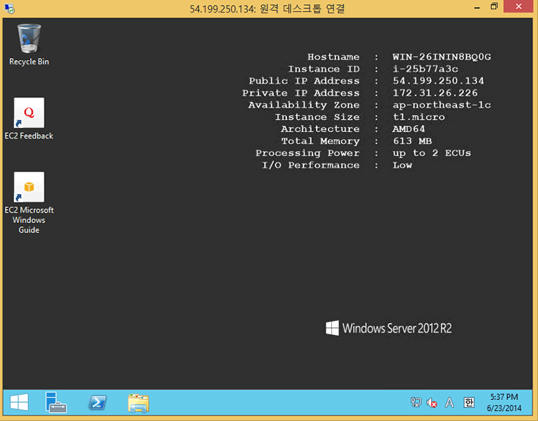 Windows EC2 인스턴스에 원격 데스크톱으로 연결하였습니다.