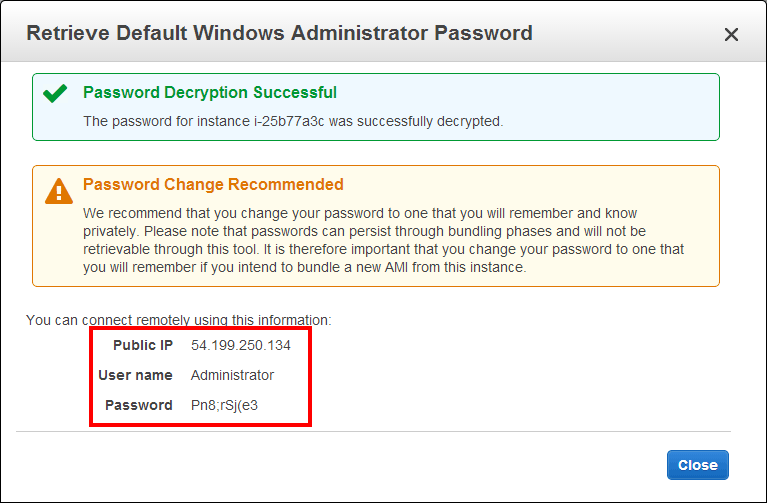 그림 34-3 Windows EC2 인스턴스 비밀번호 확인