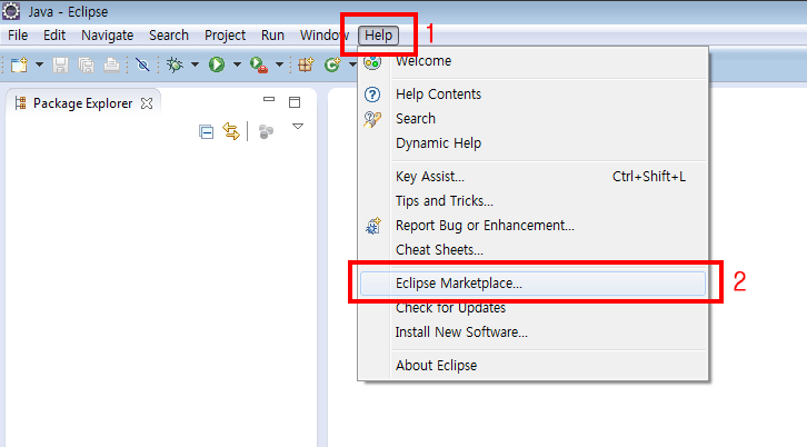 Eclipse를 실행하고 메뉴에서 Help → Eclipse Marketplace...를 클릭합니다.
