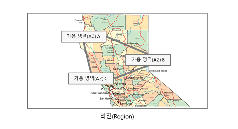 가용 영역AZ, Availability Zone이 우리가 흔히 말하는 데이터센터IDC입니다. 이 가용 영역이 위치한 데이터센터는 같은 지역 혹은 도시라 하더라도 멀리 떨어져 있습니다.