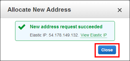 새 IP 주소 할당 요청이 완료되었습니다. Close 버튼을 클릭합니다.