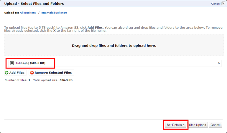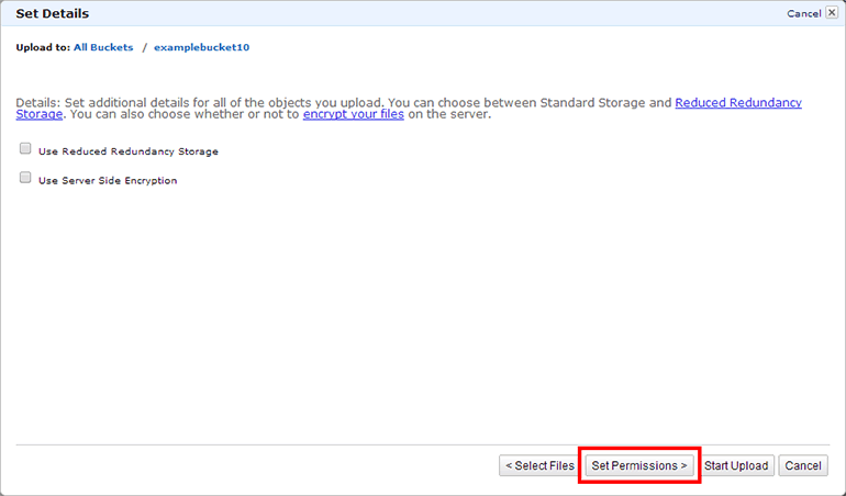 - Use Reduced Redundancy Storage: 낮은 중복 스토리지 사용 옵션입니다. 이 부분은 파일을 올리고 나서도 설정이 가능합니다. 기본값 그대로 사용합니다.