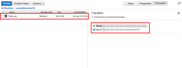그림 11-14처럼 S3 객체 목록에서 그림 파일이 올라간 것을 확인할 수 있습니다. 파일의 용량이 크다면 오른쪽 프로그레스바에서 진행률이 표시됩니다.