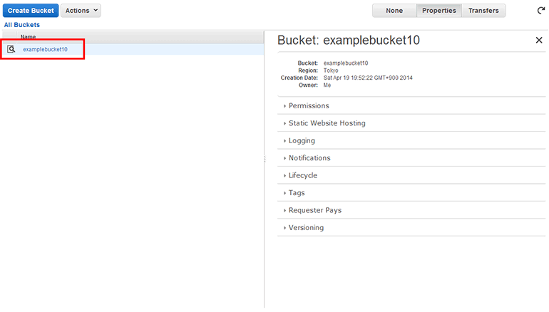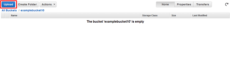 S3의 가장 기본적인 기능인 파일 올리기 및 받기를 먼저 알아보겠습니다. S3 버킷 목록에서 방금 생성한 버킷(그림 11-6에서는 examplebucket10)을 클릭합니다.