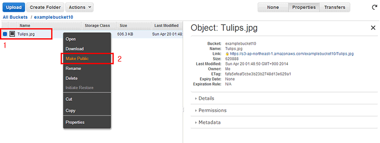 그림 11-24 S3 객체의 Make Public과 권한 설정
