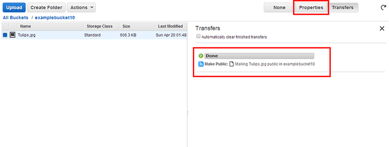 Make Public이 완료되었다는 것이 오른쪽에 표시됩니다. 위의 Properties 버튼을 클릭합니다.