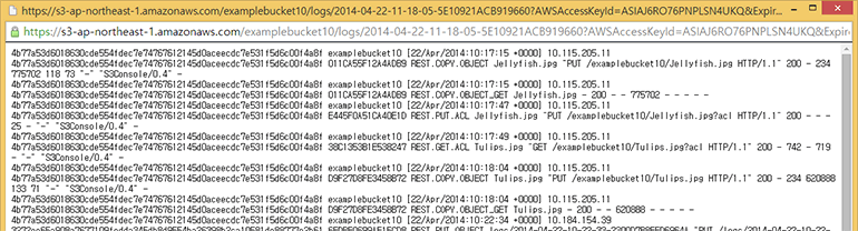 그림 11-56 S3 객체 접속 로그 파일 내용