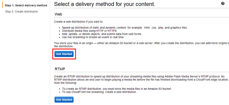 오리진이 일반적인 웹 서버이므로 Web의 Get Started 버튼을 클릭합니다.