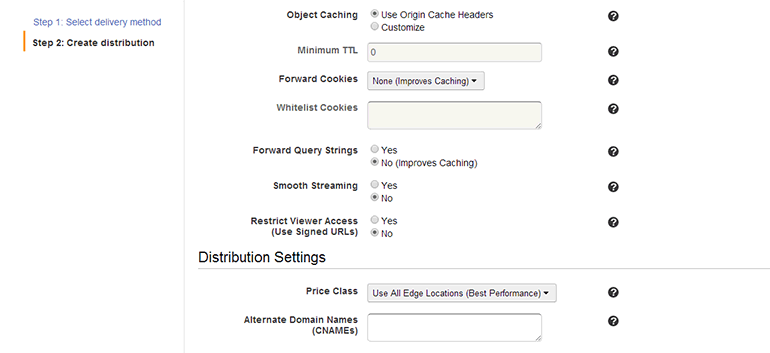 • Use All Edge Locations: 모든 에지 로케이션을 사용합니다. 위의 두 옵션보다는 요금이 많이 나옵니다.