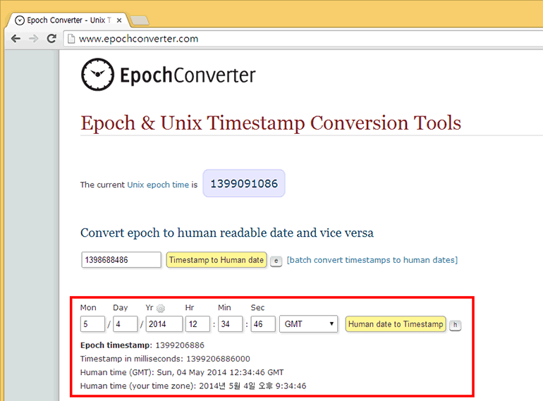 http://www.epochconverter.com에 접속합니다.