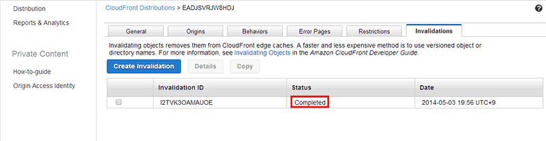 무효화 요청이 모든 에지 로케이션에 적용이 완료되면 Status가 Completed로 바뀝니다.