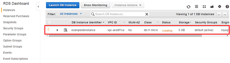 그림 13-4 RDS 인스턴스 목록