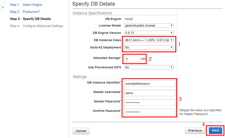 - Master Password, Confirm Password: MySQL DB 관리자 계정의 비밀번호입니다. 여러분이 사용하고 싶은 비밀번호를 설정합니다.