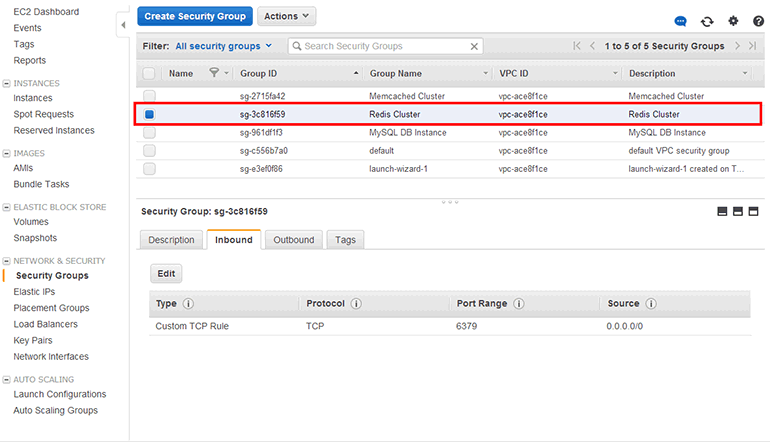 그림 15-39 ElastiCache Redis 클러스터용 Security Group 생성 완료