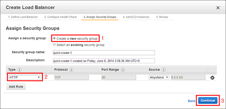 - Assign a security group: 로드 밸런서의 Security Group입니다. Create a new security group을 선택합니다.