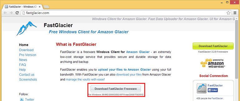 http://fastglacier.com에서 FastGlacier를 다운로드합니다.
