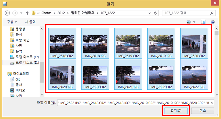 Glacier 볼트에 업로드할 파일을 선택합니다. 저는 여행사진을 올리겠습니다.