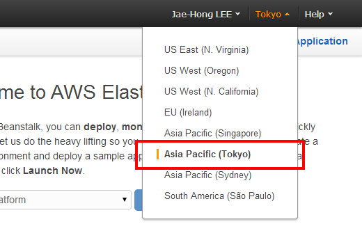 그림 23-4 Elastic Beanstalk 리전 선택