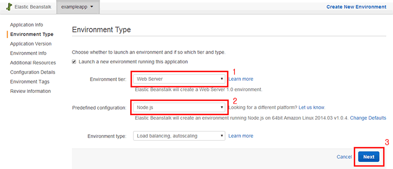 - Environment tier: 환경 종류입니다. Web Server을 선택합니다.