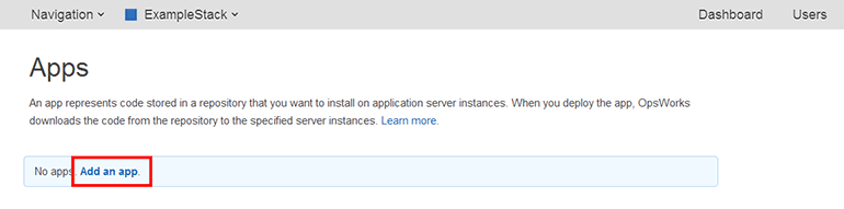 OpsWorks App 목록에서 Add an app을 클릭합니다.