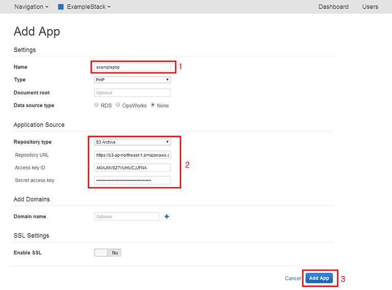 - Repository type: 소스 저장소 종류입니다. Git, Subversion, Http Archive, S3 Archive를 사용할 수 있습니다. S3 Archive를 선택합니다.