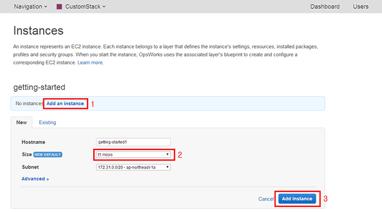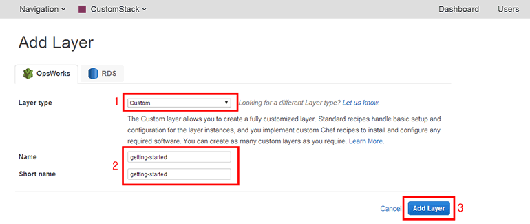 - Name: OpsWorks에서 표시될 이름입니다. getting-started를 입력합니다.