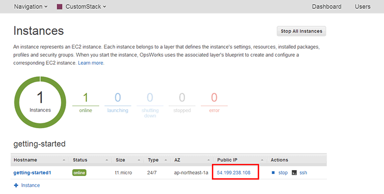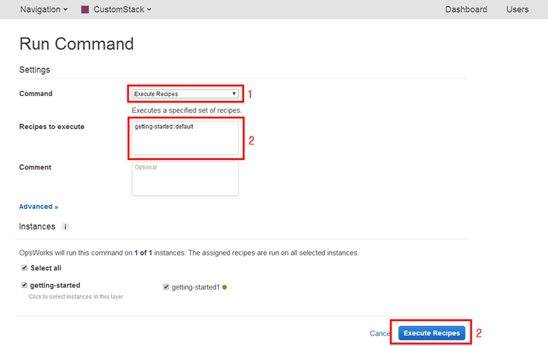 Execute Receipes를 클릭하면 Chef 레시피가 인스턴스에서 실행됩니다.