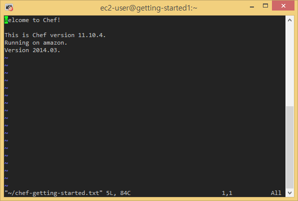 [ec2-user@getting-started1 ~]$ sudo vim /root/chef-getting-started.txt