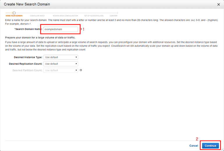 그림 25-11 CloudSearch 검색 도메인 생성 시작