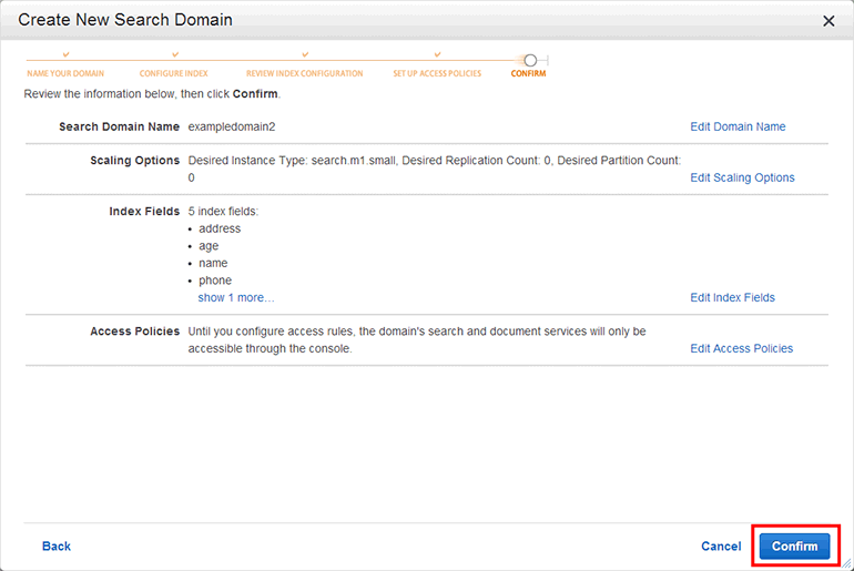 그림 25-32 CloudSearch 검색 도메인에 사용할 인덱스 확인