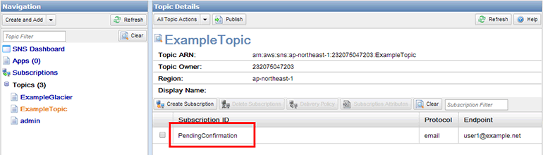 - Topic Name: 현재 SNS 토픽의 이름이 표시됩니다.