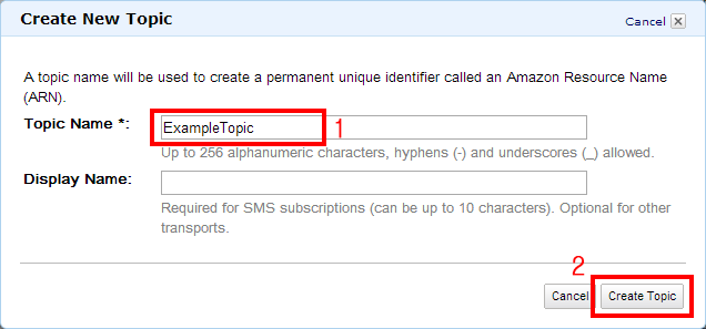 - Topic Name: 토픽 이름입니다. ExampleTopic을 입력합니다.