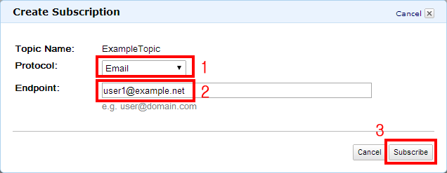 - Protocol: 푸시 알림 메시지를 보내는 방식입니다. Email을 선택합니다.